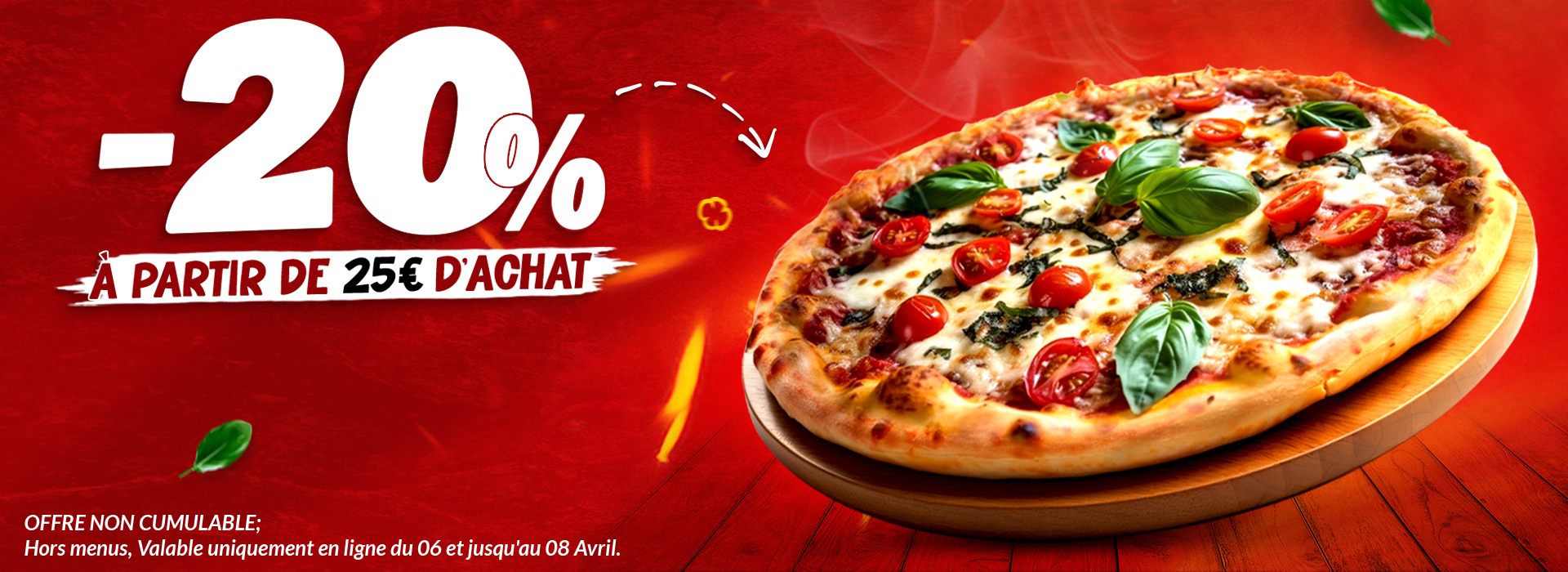 *La réduction s'applique sur la pizza la moins chère. Uniquement sur les commandes en ligne.